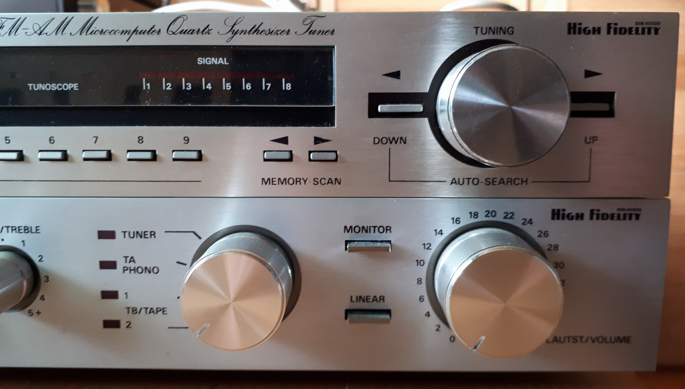 Mir sind auch schon ab und zu silberne Geräte mit braunem Deckel aufgefallen, die habe ich auch immer als verbastelt abgetan. Und den vorliegenden ST 6000 hätte ich nicht gekauft, wenn ich auf den Bildern den braunen Deckel gesehen hätte. Hat aber nur 20 € gekostet. Vielleicht gehört zu den champagner-farbenen Fronten tatsächlich ein brauner Deckel. Das Bild aus dem Hifi-Wiki erhärtet den Verdacht: