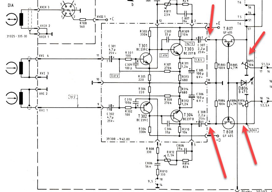 Wenn bei Vor/Hinterbandstellung kein Signal vorhanden ist, würde ich mal an den "Pfeilstellen" das Signal verfolgen