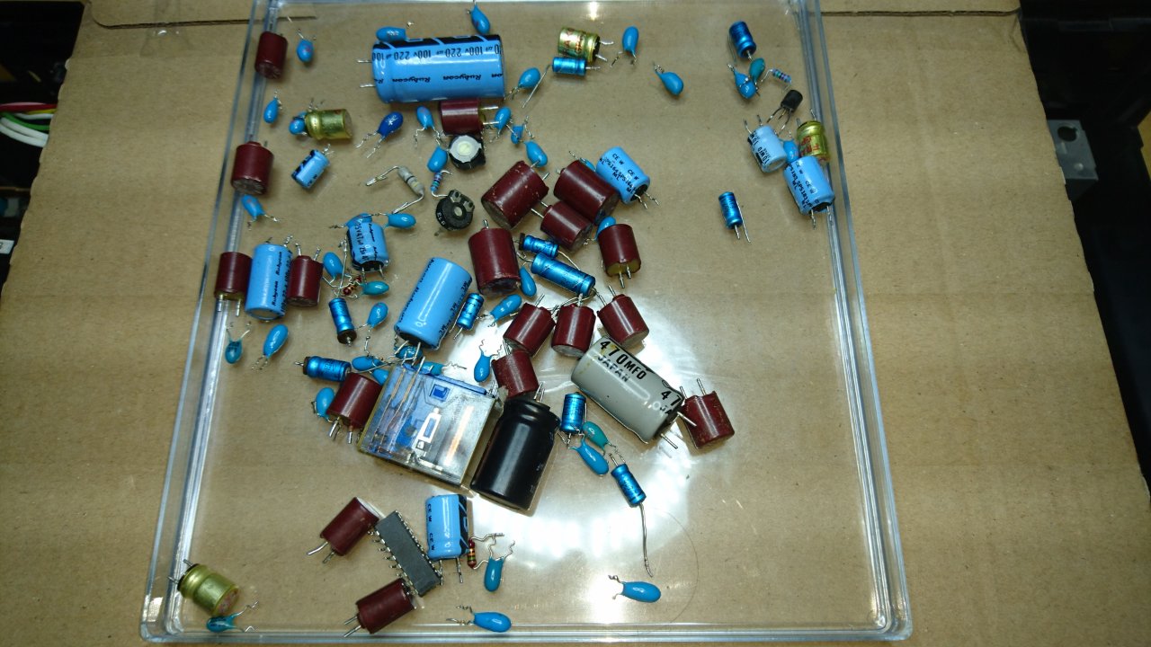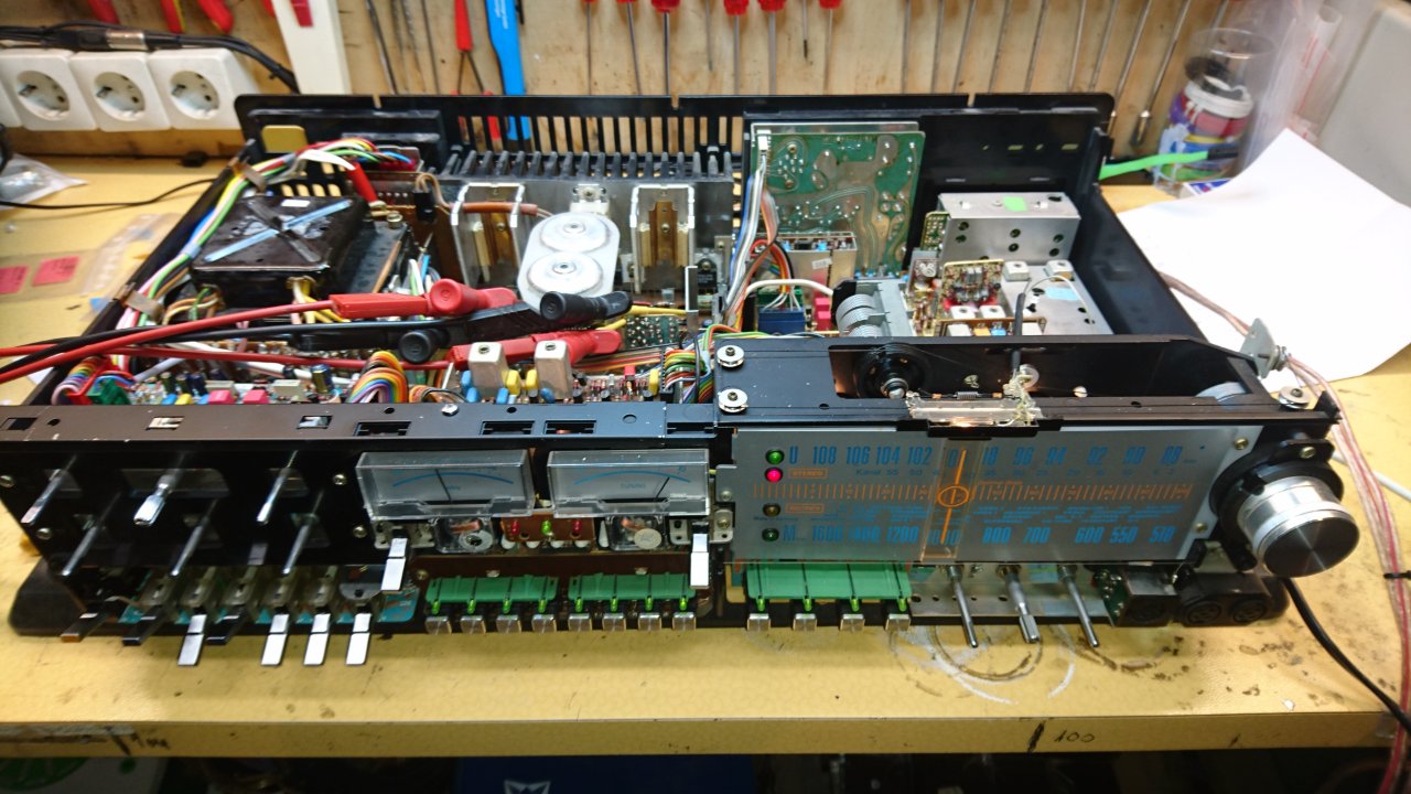 Nachdem die Endstufe einen betriebssicheren Eindruck machte, waren ein leiser Kanal und diverse Kontaktprobleme zu beklagen. Die komplette Überholung der beiden Klang und Lautstärkeplatinen sowie der Schalterplatine inkl. der Reinigung der Relaiskontakte, brachte die erhoffte Abhilfe.