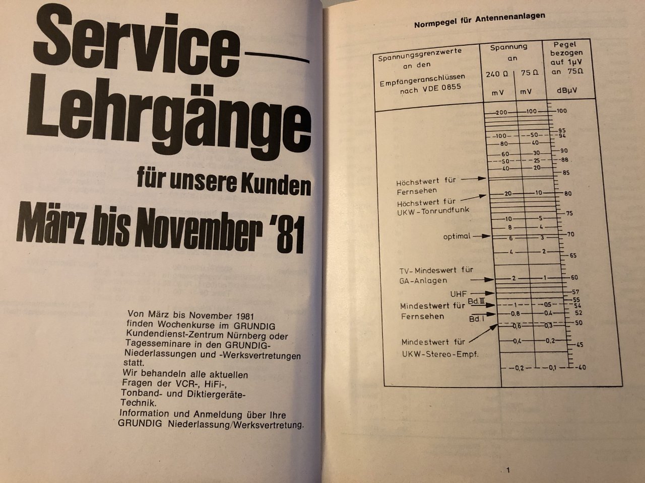 In Grundigs Technischen Jahrbüchern waren viele Tabellen und Hinweise enthalten.