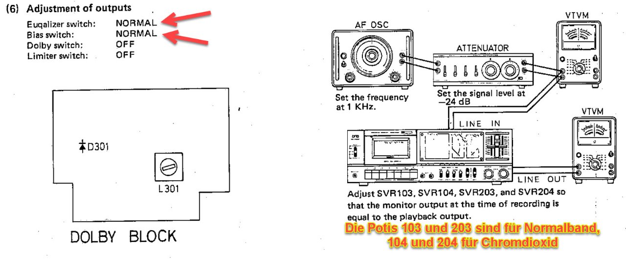 Da steht doch tasächlich geschrieben daß alle Aufsprechpegel mit Normalband eingestellt wird.