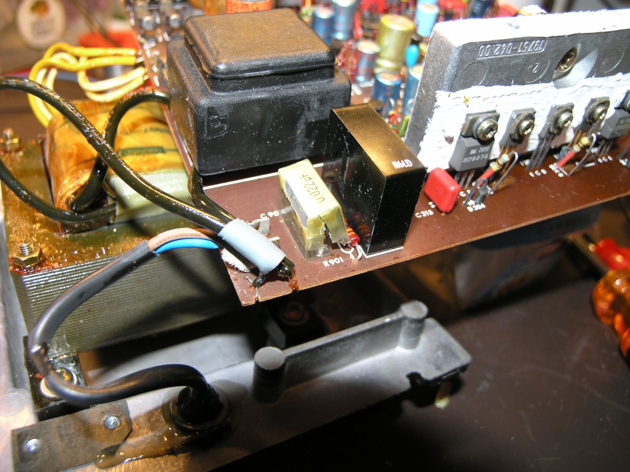 Blau ist die Masse gekennzeichnet ,die es verursacht haben könnte, wenn dort ein KS ist, wird eigentlich nur der kleine Elko kurzgeschlossen. Jetzt muss ich die NEtzelkso tauschen.