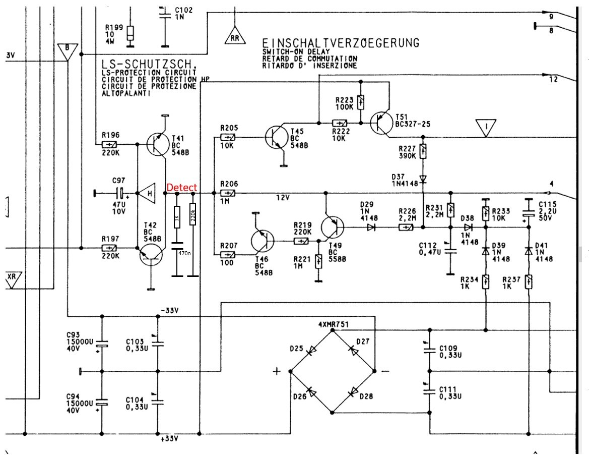 das Relais zog oft direkt nach dem Einschalten des Geräts an. Verbunden mit einem Knall aus den Lautsprechern.