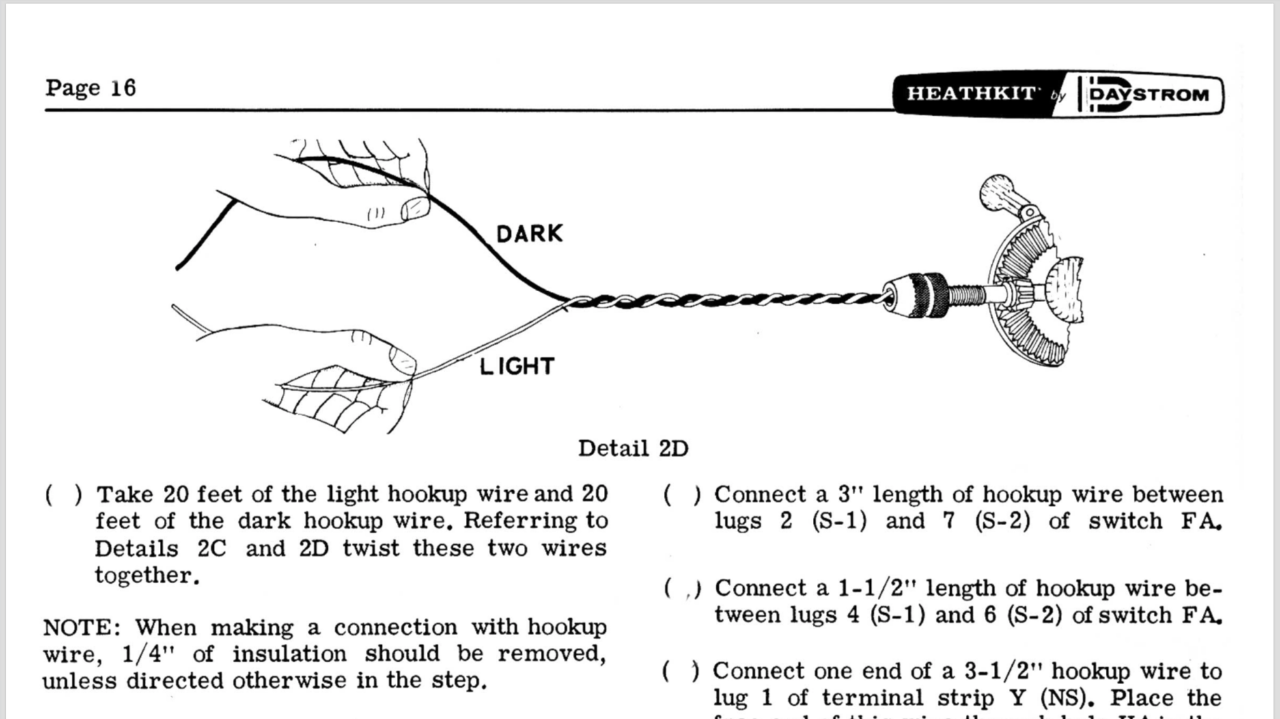 Die wohl ziemlich vergessene Marke "Heathkit" (Daystrom) hat damals Selbstbau-Kits für Röhrenverstärker und -tuner (später wohl auch solid state Zeugs) angeboten. In den Bauanleitungen bestanden sie ebenfalls darauf, dass die Kabel verdrillt werden. Mindestens stabiler wird der Spaghettisalat dadurch doch sicher.