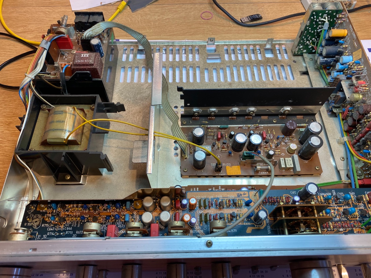 Nach erstem Test war ein Kanal deutlich zu Leise, nach bewegen der Klangregler-Potis wurde dies Besser, also mal mit Tuner 600 reinigen. Des weiteren werden alle Tantal's gewechselt und die Roederstein Elkos. Sämtliche Masse-Verbindungen werden überprüft, das hat mal für richtig Probleme in einem anderen XV gesorgt.