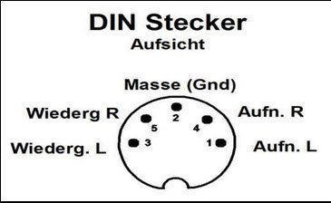 Du könntest also ein solches Kabel opfern und die Cinch oder Klinkenstecker, oder was auch immer abtrennen und durch einen 3poligen DIN Stecker ersetzen.