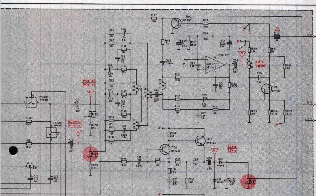 Oberhalb von dem dem Poti 164 gibt es einen Zweig mit RA gekennzeichnet, der führt direkt zur Radiobuchse.