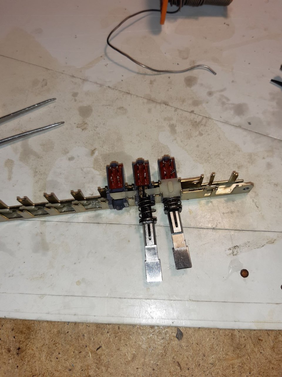 - Man merkt das der Schieber mit dem die Tasten einrasten sollen sich (zu) schwer bewegen lässt : falls keine Taste eingedruckt ist, muss es sich lose bewegen können