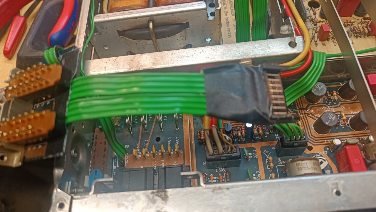 Dazu wird das Kabel entsprechend umgelötet, so daß die Steckverbindung hinter dem Trennblech liegt.