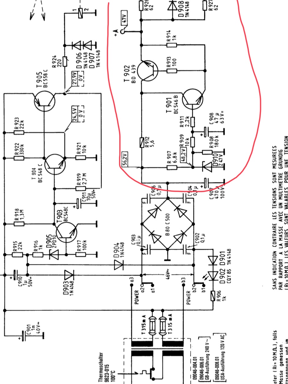 Spannungsregler wäre BD 439 für die 47V, die kommen korrekt raus, aber der könnte trotzdem defekt sein?