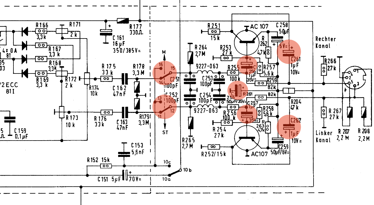 • C257 1 µF / 35 V an der Basis vom AC107 Isolation und Kapazität ok?