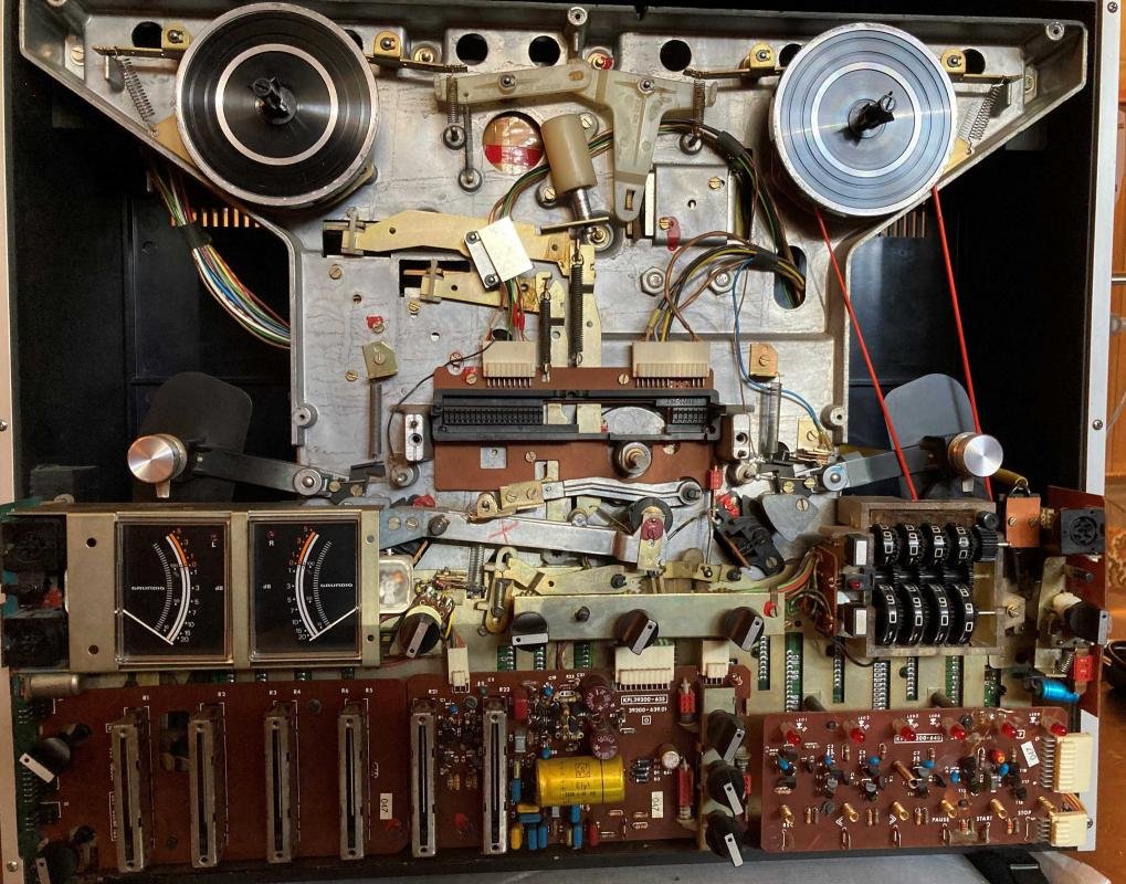 Abspielen und Aufnehmen kann ich aktuell nicht testen, da ich zunächst einmal die entsprechenden (Adapter-)-Kabel mit DIN-Anschluss geordert habe. Mit den bisher vorgenommen Arbeiten bin ich mit meinem Latein am Ende. Daher würde ich mich freuen, wenn jemand aus dem Raum NRW sich einmal in einer stillen Stunde das Grundig-Tonbandgerät ansehen sowie ggf. Instand setzen und einmessen könnte. Anbei ein paar Fotos der Grundig TS 1000.