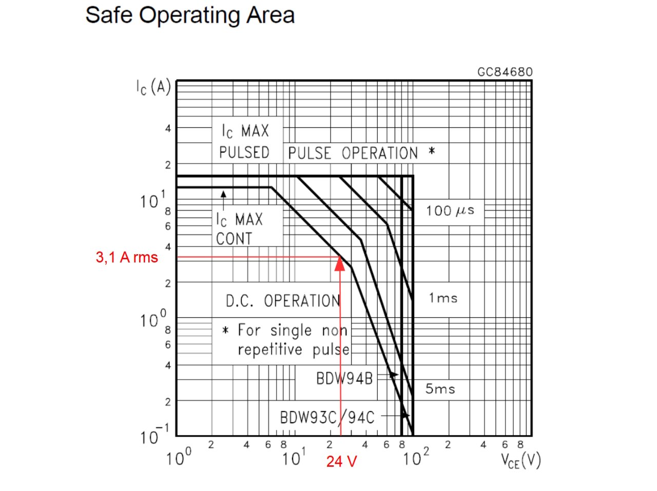 BDX53C BDX54C sind dann auch keine Lösung, sie sind sogar noch etwas schlechter in der SOA als BDW93 / BDW94.