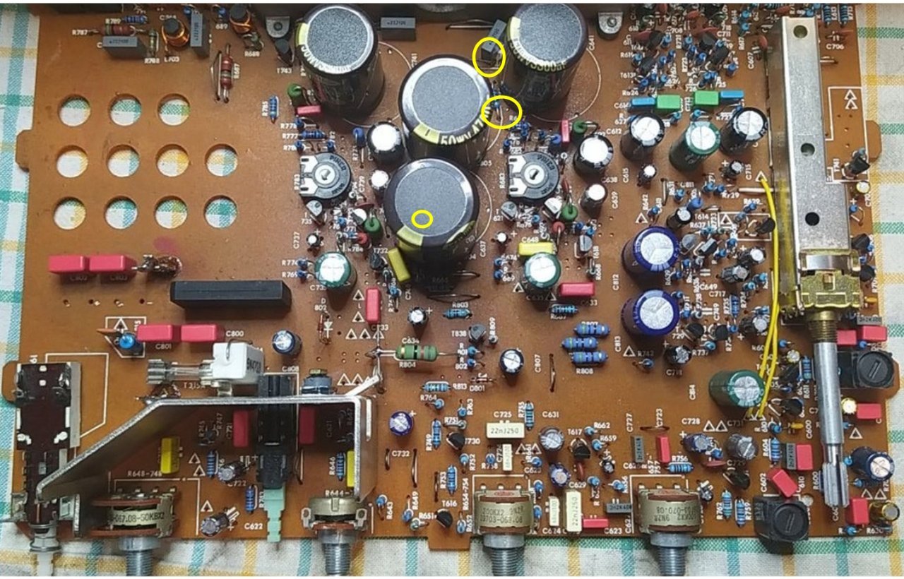 Wenn Einbaufehler dieser oder anderer Art vorliegen, die letztlich auf den Austausch der grossen Elkos mit Stützring durch solche mit snap-in zurückgehen und dadurch veränderte Platzverhältnisse, dann müssen diese Fehler erst korrigiert werden. Sonst hilft auch nicht der Einbau der Zusatz-Emitterwiderstände.