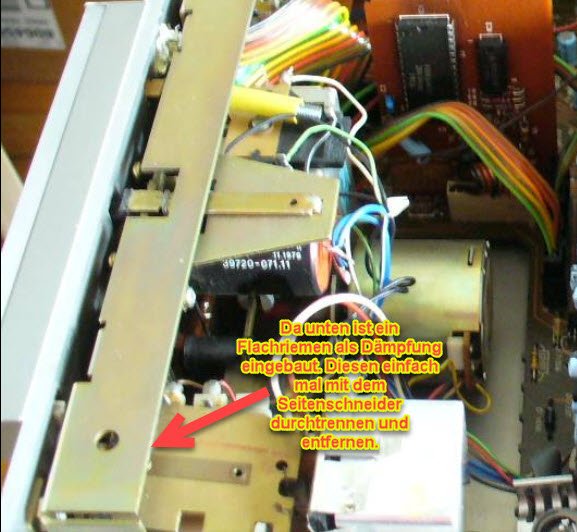 War es aber nicht. Am Kopfschlittenmagnet ist vorne ein Flachriemen als Dämpfung verbaut.