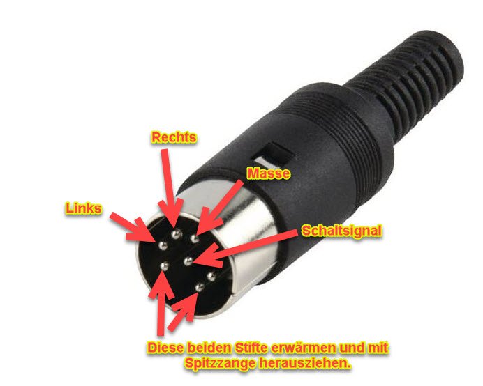 Hier die Steckerbelegung für DIN Kabel 6polig, Grundig #392
