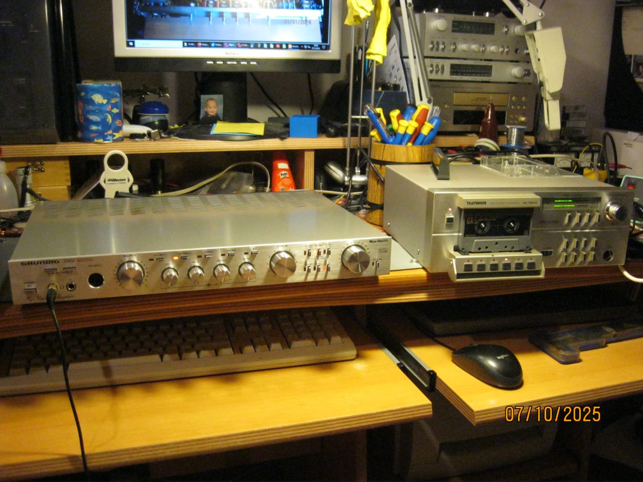 War ganz glücklich damit, allerdings ist gleich ein weiteres Problem aufgetreten. Bei ausgeschaltetem "Netzschalter" ging das Gerät sporadisch an und aus. Verbindungsleitung abgezogen, Gerät ordnungsgemäß aus. Darüber wurde ja auch bereits geschrieben. Da es mit meiner Erkenntnis nur der Schalter sein konnte, hab ich mich auf die Suche nach Ersatz begeben. Tatsächlich bei eBay einen Laden gefunden, welcher "neue" alte Ersatzteile aus DDR - Produktion anbietet. Für 12 € den passenden Ersatz gefunden und eingebaut. Alles funktioniert tadellos. Zudem habe ich alle Kondensatoren ersetzt, die Reglerplatine ist eine Herausforderung, leider ohne 3 verdampfte Lötaugen war es nicht zu machen, auch bei allergrößter Vorsicht. Auch den Pegelsteller für Ausgang 1 habe ich erneuert, diese werden ja fast nie benutzt und "rosten ein".
