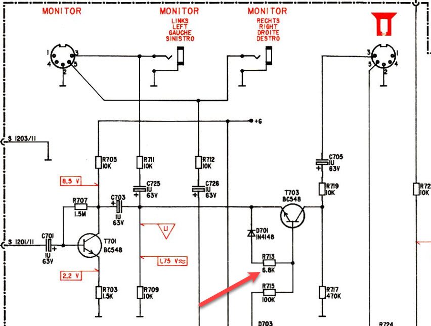 hat jemand einen tipp zu folgendem Fehler-kurzhubtaste Stop leuchtet rot obwohl andere Funktion gewählt ist z.B Play.Nach längerer Laufzeit schaltet sich Stop led dann aus und nur gewählte Funktion wird angezeigt.Eine andere Frage betrifft Wiederstand R713,da habe ich 0,4 Ohm gemessen,ist das richtig?