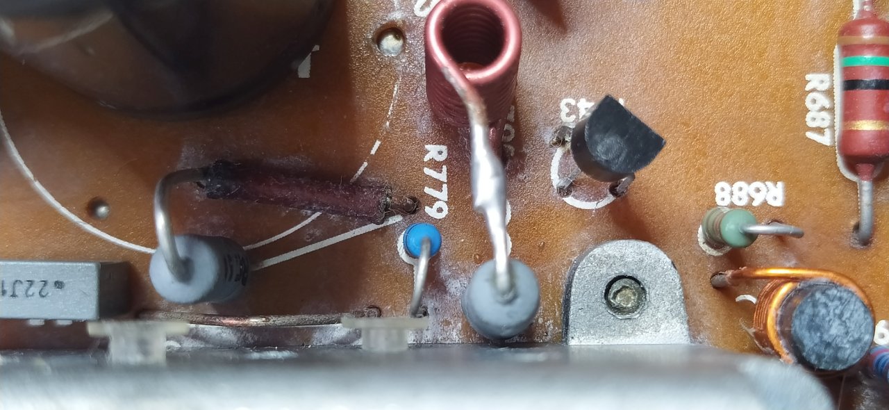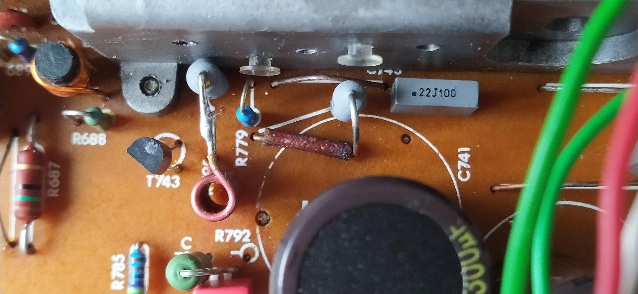 Jetzt kommt eine ganz andere Baustelle zum Vorschein, der Widerstand R684 100Ohm wird heiß und fängt an zu riechen.