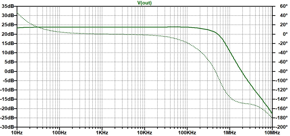 TIP101/TIP106: BDW93A/BDW94A: Mit einer schwingungsinduzierenden kapazitiven Last (zum Testen in der Simulation) von 100 nF am Endstufenausgang vergrössert sich der Unterschied weiter: Mit BDW93/94 verstärkt sich die Resonanz (Überhöhung der Amplitude) bei 400 kHz erheblich, während sie mit TIP101/106 gerade nur erst im Ansatz erkennbar wird.