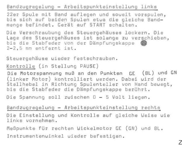 Die Umspulgeschwindigkeit läßt sich, unabhängig des Schalters 8 (Bandgeschwindigkeit) immer regeln, sofern die Funktion gegeben ist und gewichtstechnisch keine großen Unterschiede der Spulen herrschen.