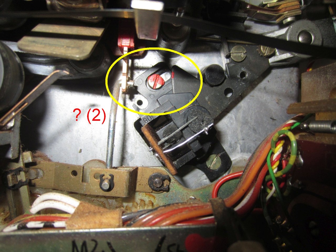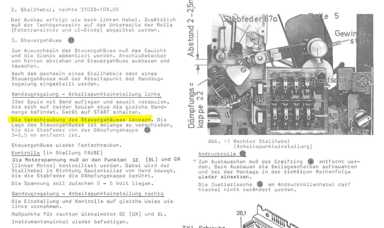 Je nach Höhe der Seriennummer läßt sich am rechten Bandfühlhebel nach lösen der Madenschraube der "Metalllappen" verdrehen.
