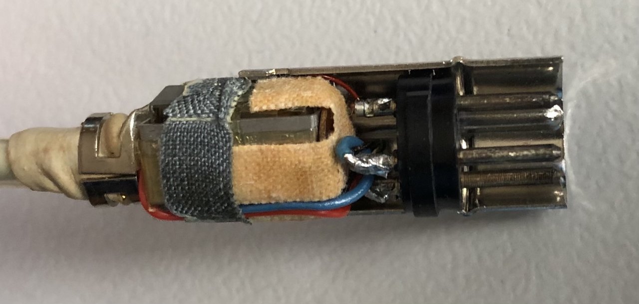 bei meinen beiden GDM21 habe ich bis jetzt noch nicht einmal die Madenschraube heraus bekommen. Ich habe es bis jetzt aber auch noch nicht mit Energie versucht, muss ich zugeben. Ich benutze beide Mikrofone noch mit dem Originalkabel, beide hatten einen Aderbruch hinter der Zugentlastung des DIN-Steckers. Ich habe das Kabel jeweils um 10 bis 15 cm gekürzt und neu am Stecker angelötet. Das ist mit der Stoffisolierung natürlich etwas fummelig, aber es geht. Die äußere Isolierung des Kabels habe ich vor dem Ende zum Stecker hin mit ca . 15 mm Schrumpfschlauch versehen, damit diese nicht auseinander fällt.