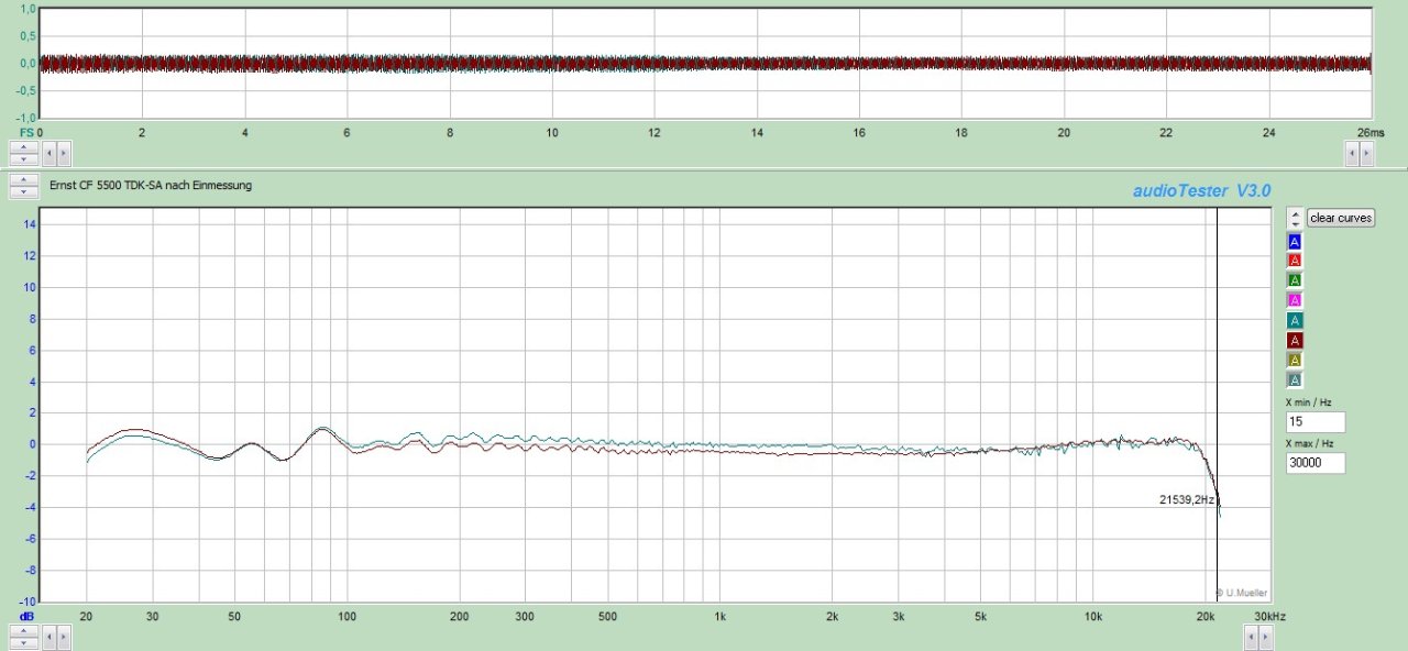 Bei allen Bandsorten Frequenzgang ohne Abfall bis 20kHz, bzw mit den üblichen -3dB gemessen, bis 21,5kHz.