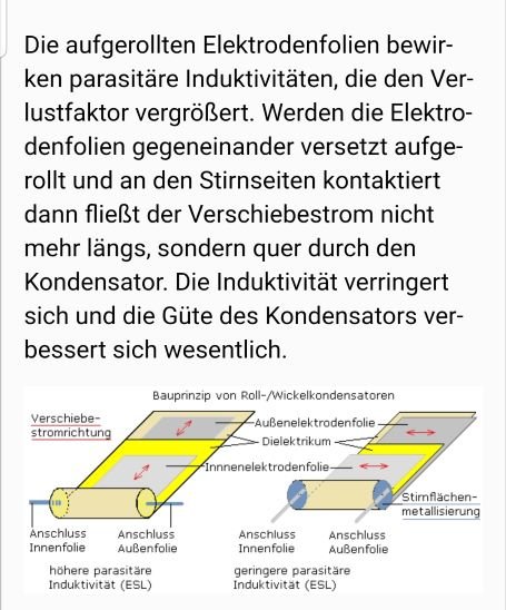 Ich glaube, ich konnte klären, warum die neuen axialen Kondensatoren keinen Ring zur Bezeichnung der Außenfolie mehr haben.