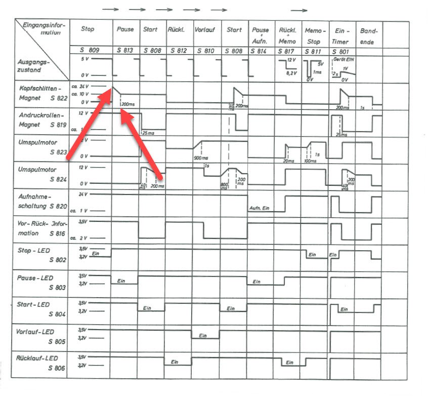Problem 2: Der Kopfschlittenmagnet ist wohl zu schwach, die Andruckrolle und Tonkopf erreichen erst nach einem manuellen Anheben dessen die Kassette, welche dann aber problemlos spielt, abgesehen vom dejustierten Azimuth, aber das kommt später.