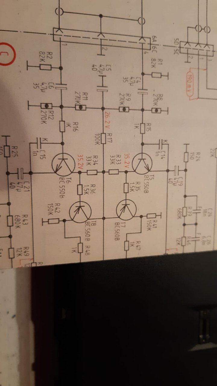 C5 am TA EVV hatte 47µ im SP aber 4,7µ. 4µ7 macht Sinn, der Ladewiderstand beträgt 100k. Ergibt Ladezeiten >10 sec bei 47µ.