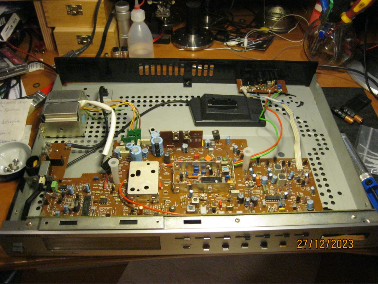 Und dabei gleich auch noch die Speicherbatterie durch 2 AA-Batterien ersetzt (das Batterie-"fach" war mal eine NAD- FB). Nachdem das behoben wurde, läuft der Tuner wieder wunderbar.