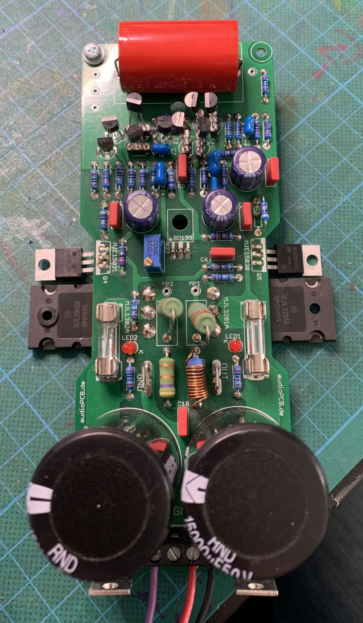 Es hat mich einiges an Lehrgeld gekostet (Erfahrung und Euro), aber jetzt habe ich für ca. 450€ Gesamtkosten eine Stereo-Endstufe oder besser 2 Monos (Platinen, Bauteile, Trafos (2x), Einschaltverzögerung, Kleinteile und Gehäuse).
