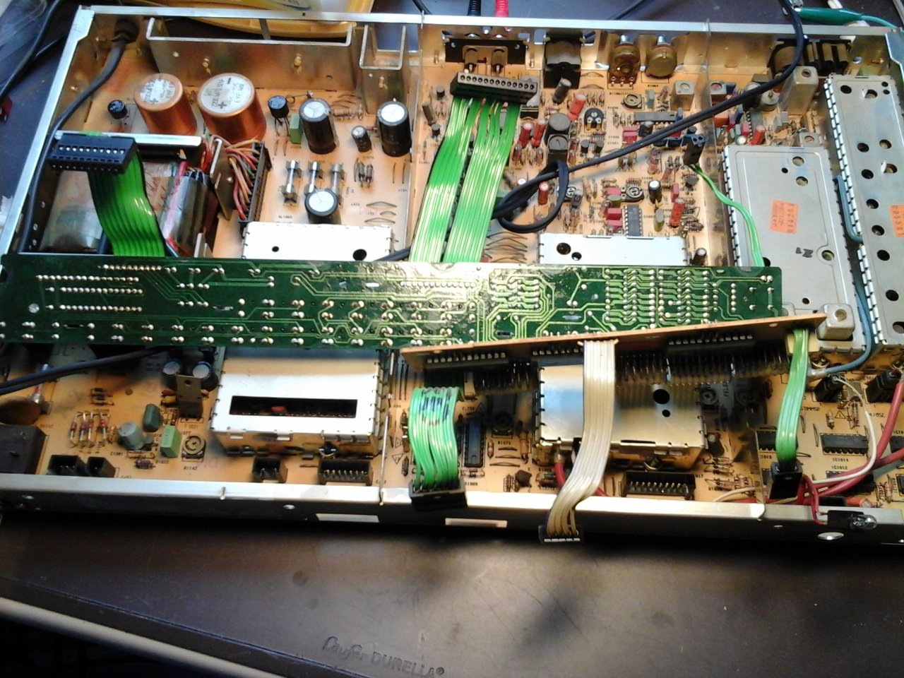 Hier war auf der Anzeigenplatine eine Leiterbahn nicht sichtbar unterbrochen. Draht genommen. Läuft. Hatte schon mal der GL Wechsler schon gemessen (Spitzenabdrücke), aber nicht gefunden. War nicht zu sehen, aber zu messen.