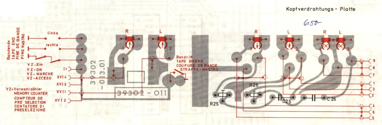 Die Kopf Anschlussplatine zeigt leider nur den Aufsprech und Löschkopf, Da die Aufnahme aber funktioniert, ist dessen Masseverbindung auch gegeben.