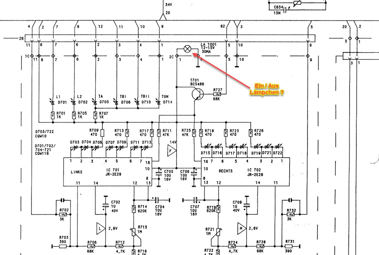 Es könnte auch ein Lichtleiter sein der die die VU Anzeige und die Power Taste mittels Birnchen beleuchtet?