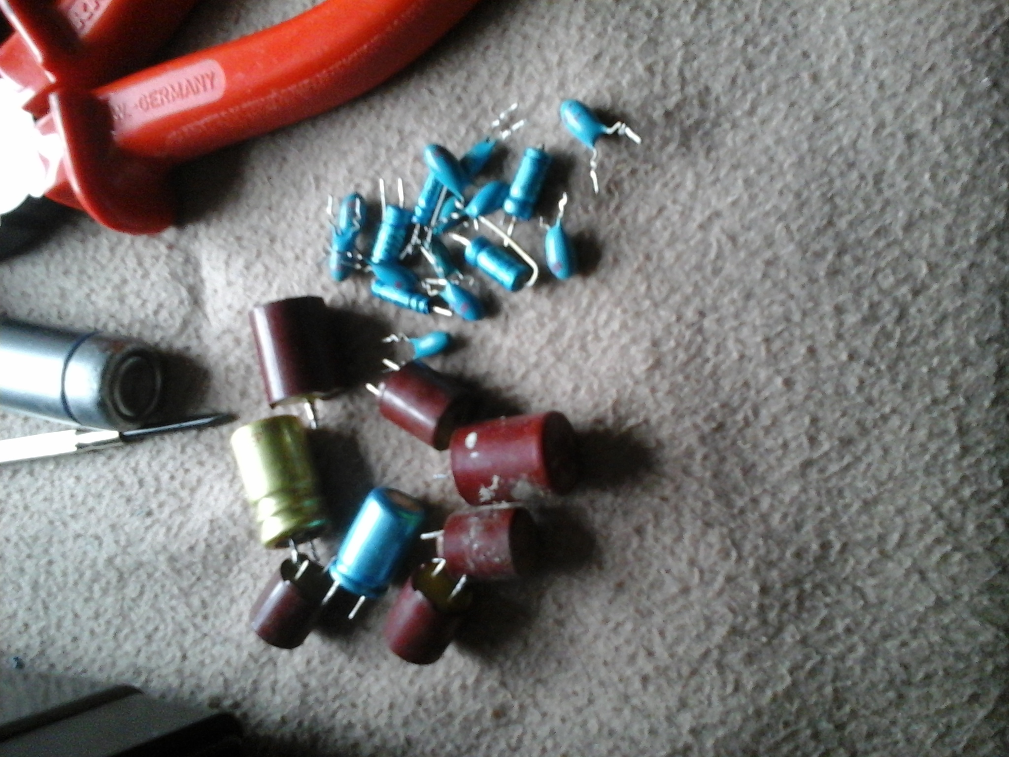 Es war also nicht einer der schon getauschten Elkos. Also mal den Rest gemacht. Das war es immer noch nicht. Die sahen aber teilweise recht schlimm aus. Ist ja schon 40 das Gerät.