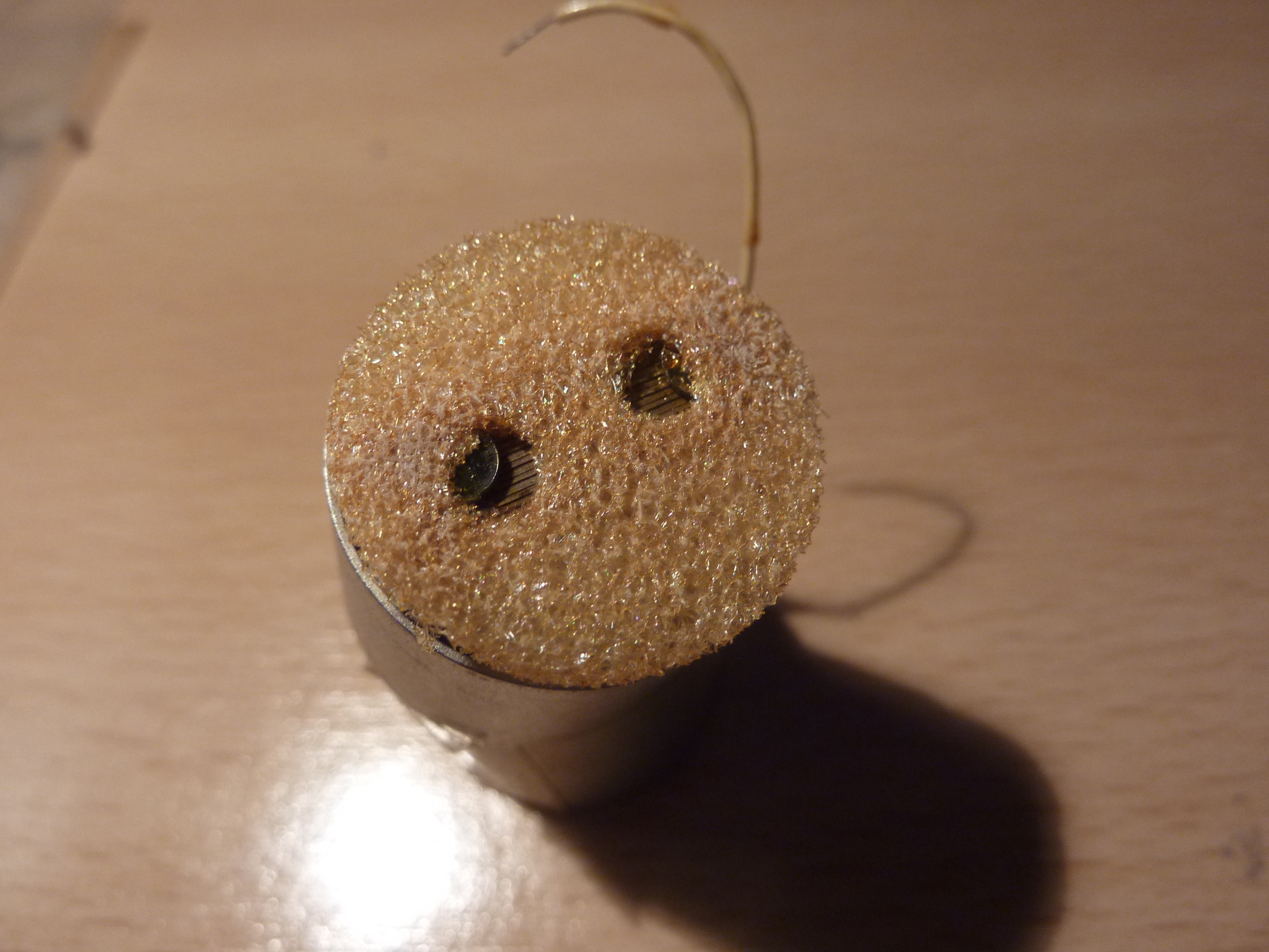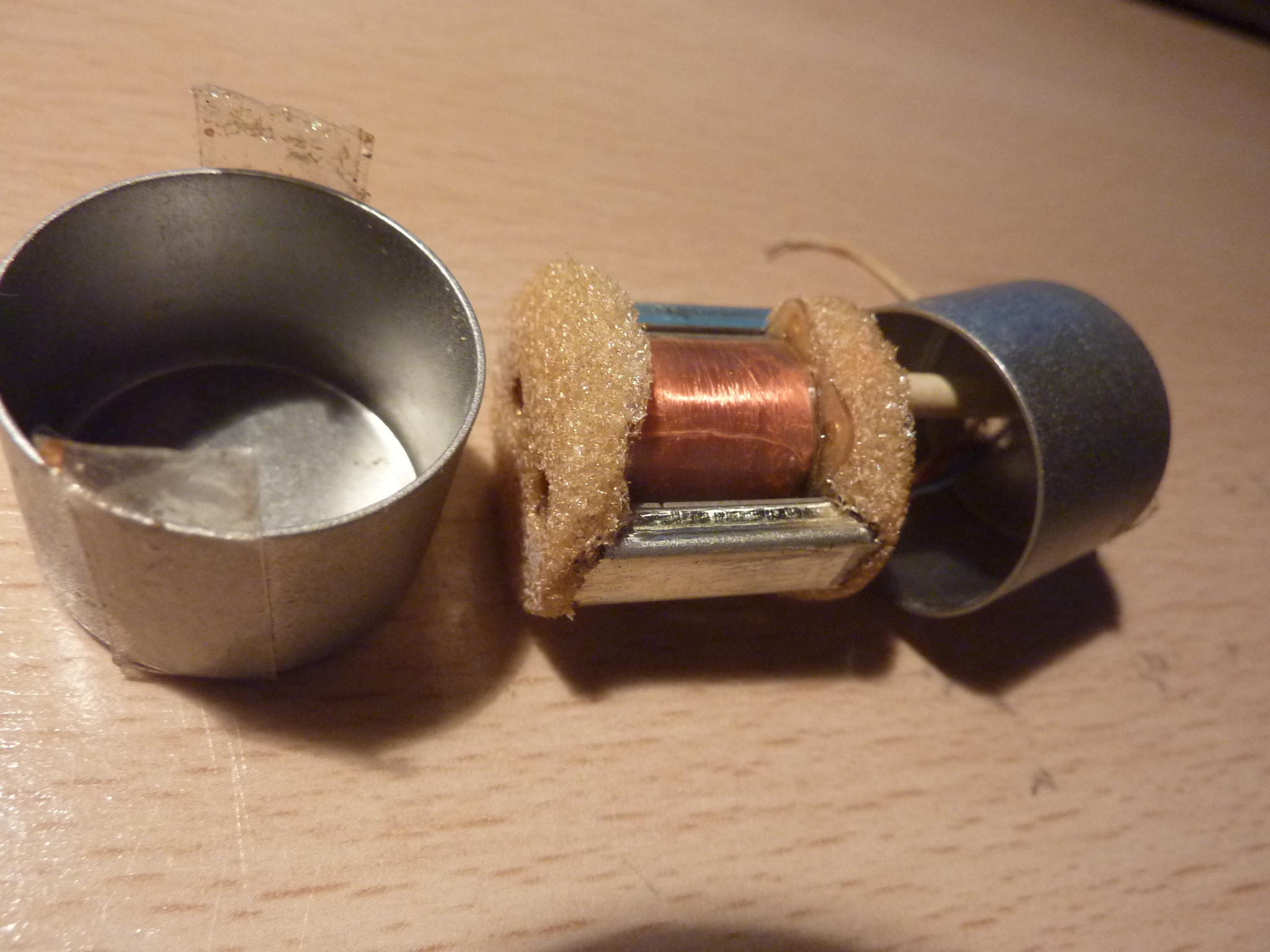Das Ding beherbergt eine Spule, oben und unten mit einem runden Schaumstoff