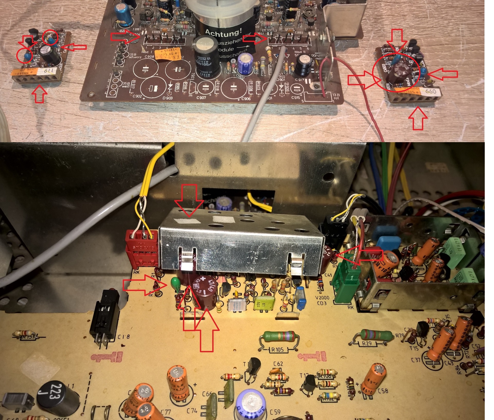 Einige Elkos werden auch durch Fokos ersetzt, besonders die im Klangregelnetzwerk oder Koppelelkos.