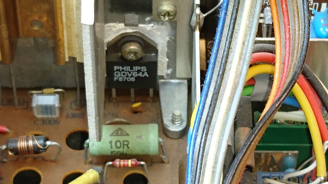 Der Ausfall des R909 im Netzteil / 55V Schiene hat den TCA 530 für die Abstimmspg. mit in den Tod gerissen. Ein halb ausgeschlachteter MT 100 diente als Oganspender.
