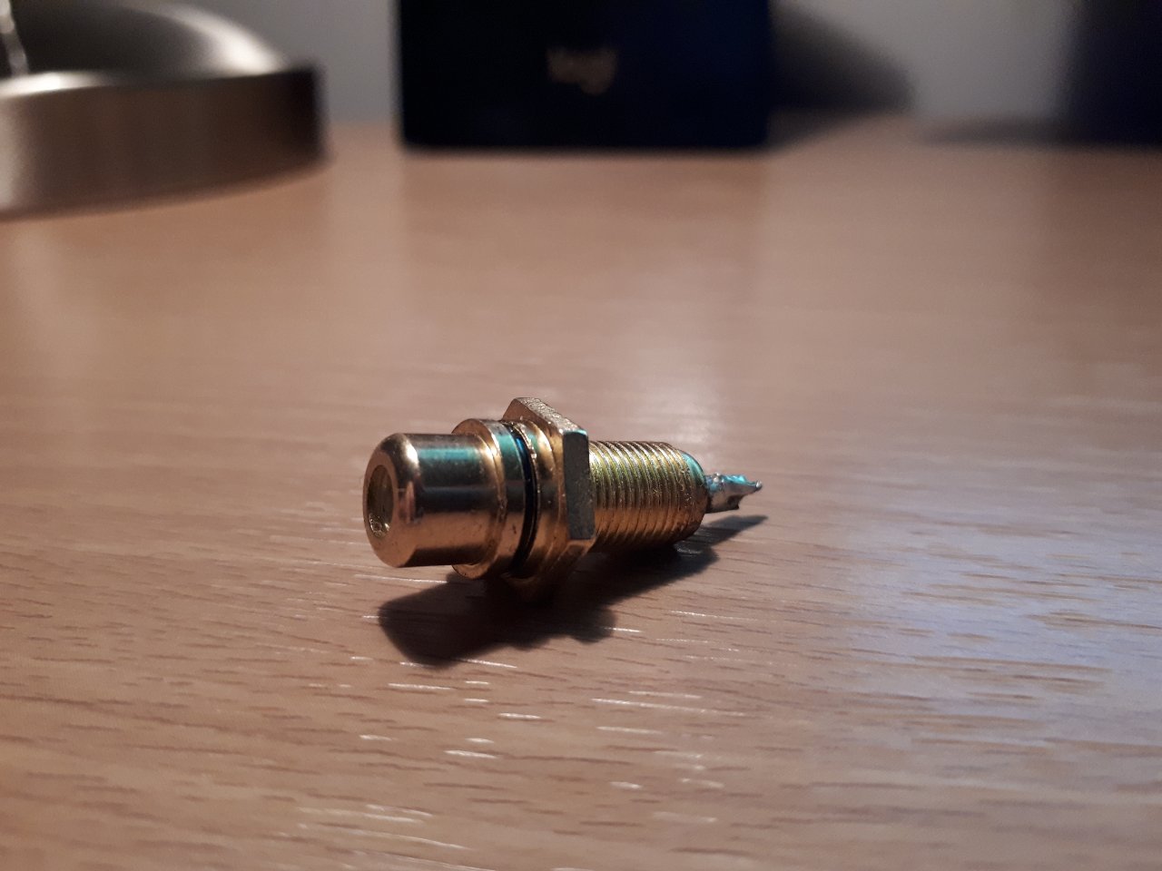 Ich habe also als erste Lösung an den einen Chinch-Stecker von meinem Naim-Kabel (s. Foto, es kostet keine