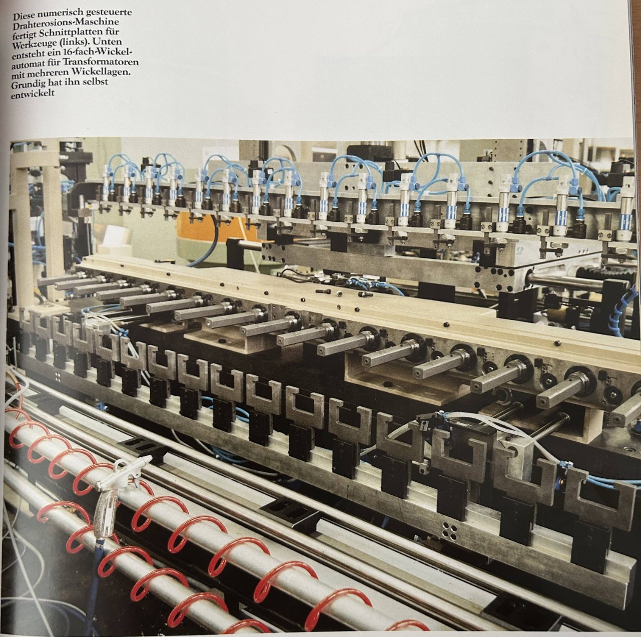 Was ich nicht wusste, aber wohl Sinn ergibt, dass Grundig diverse Maschinen für die Produktion von Radio/TV/Video selbst entwickelt hat. Mein Lieblingsfoto ist insofern das hier, ein 16-fach-Wickelautomat für Transformatoren