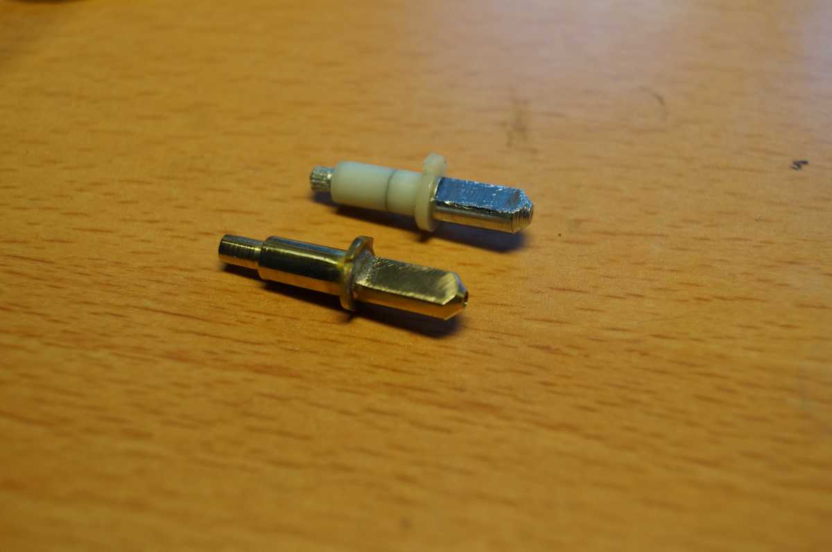 Das wollte ich so nicht hinnehmen und holte meinen Bruder dazu, der sich hobbymäßig mit dem Drehen von Metallteilen beschäftigt und ich glaube wir sind kurz vor dem Durchbruch...ich habe Bilden von unserer bisherigen Arbeit angehängt...alles was noch fehlt ist das Zahnrad. Da wir das nicht selber fertigen können, haben wir dieses bei einer polnischen Firma bestellt.