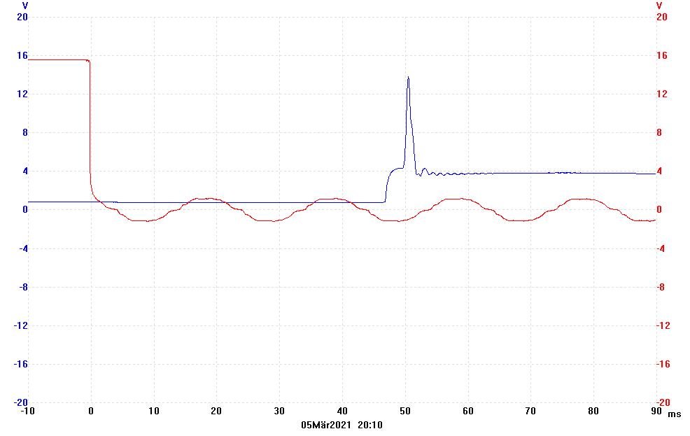 Relaiszeit messen..Spannung aufs Relais? Dann würde die DC Erkennung kommen, aber 30 ms ist wohl für die thermische Zeitkonstante der Schwingspule noch kurz. Ich denke da an die HTs in den Aktivboxen.