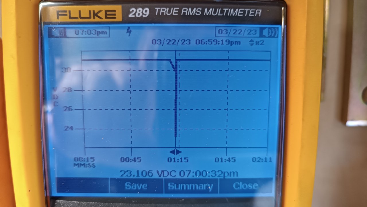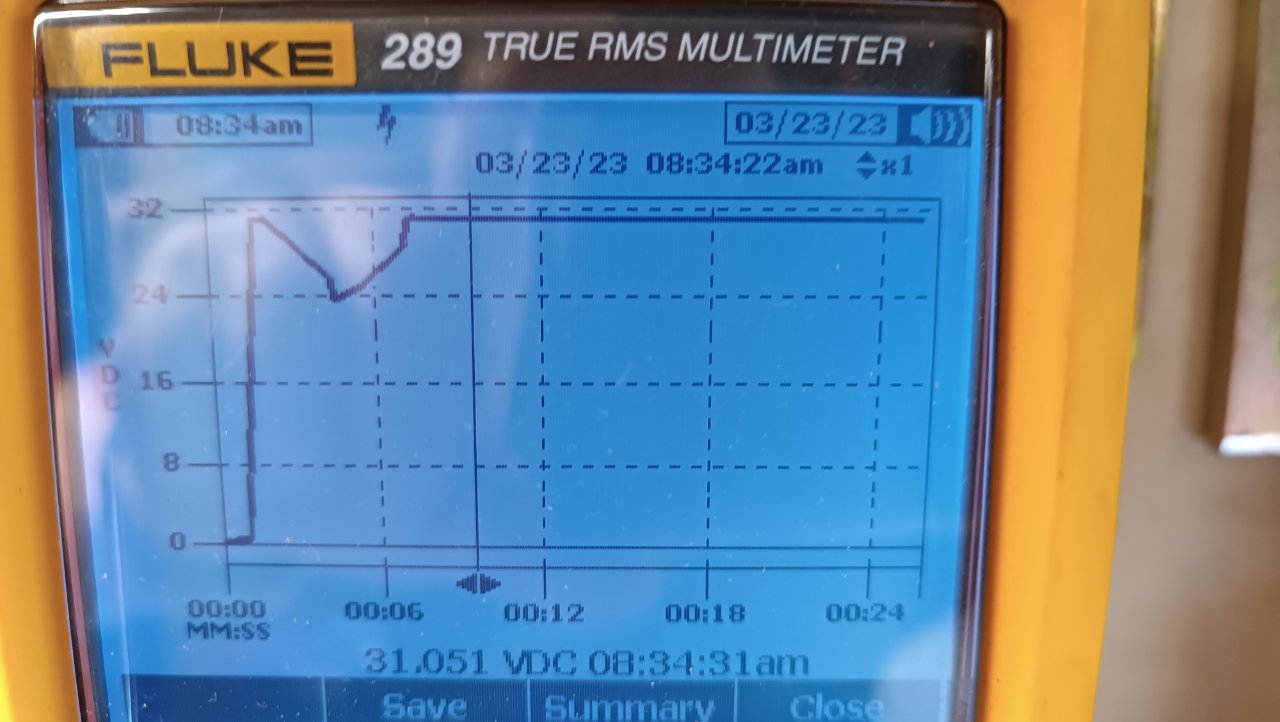 Hier der Spgsverlauf der Abstimmspg. Nach 1:14min bricht die Abstimmspg auf 23V ein.