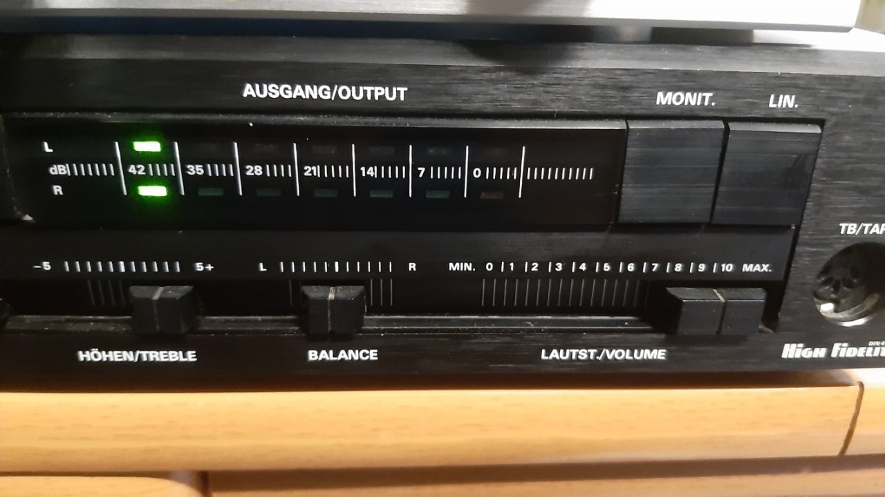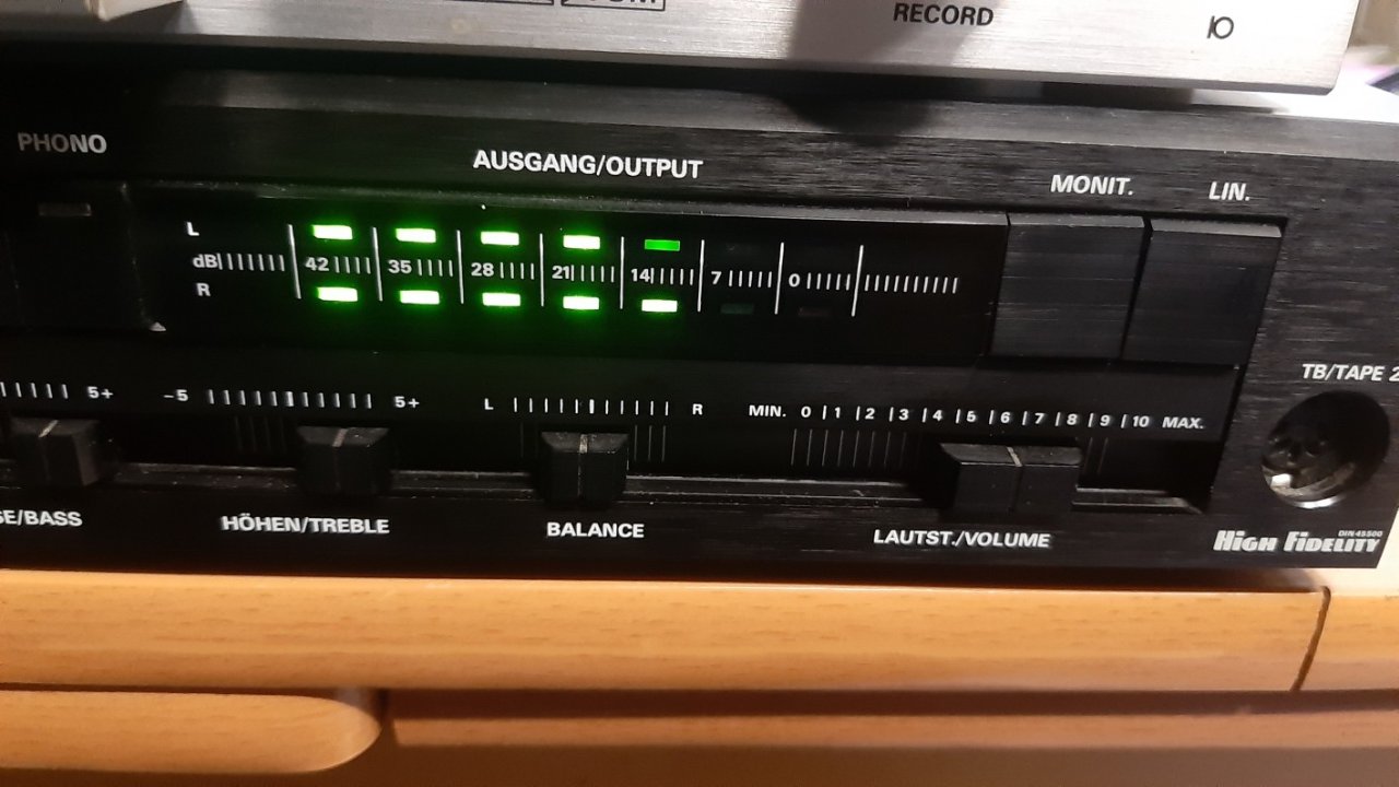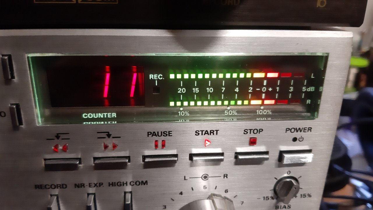 Vor zwei Wochen konnte ich ein MCF 600 mit einem MR 100 nicht hilflos in der kleinen Bucht schwimmen lassen. Für 50 Euro wanderten beide Geräte zu mir. Während der MR 100 tot ist, blinkten beim Tape alle LEDs, Zählwerk und Hintergrundbeleuchtung funktionieren. Selbst das Zahnrad hatte noch alle Zähne. Dafür war der Riemen gerissen. Also erstmal geputzt, Riemen und Zahnrad ersetzt, läuft es perfekt. Allerdings fehlt ihm, wie will ich sagen, etwas Dynamik. Ich muss den Verstärker weiter aufdrehen als andere Tapes, um die gleiche Lautstärke zu bekommen. Auch habe ich nicht die gleichen Bässe und Höhen. Ich habe dann noch die 3 Elkos im Netzteil getauscht sowie den Tantal C7 und den Gleichrichter ersetzt. Der Ausgangspegelsteller auf der Rückseite ist ganz aufgedreht. Trotzdem fehlt ihm sozusagen der Wumms. Auch hat es einen sehr lauten Ein- und Ausschaltknacks über die Lautsprecher.
