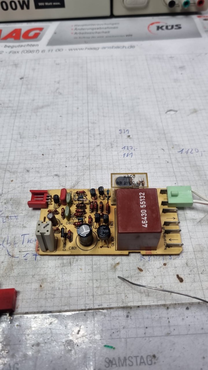 Hatte ja alle Platinen draußen und gekurt , bis auf eine , und da war doch noch einer der berühmten Gleichrichter und der war durch. Hab dann gleich die Elkos mit gemacht und alles nach gelötet. Jetzt Läuft sie und ich kann mit dem zusammenbauen anfangen.